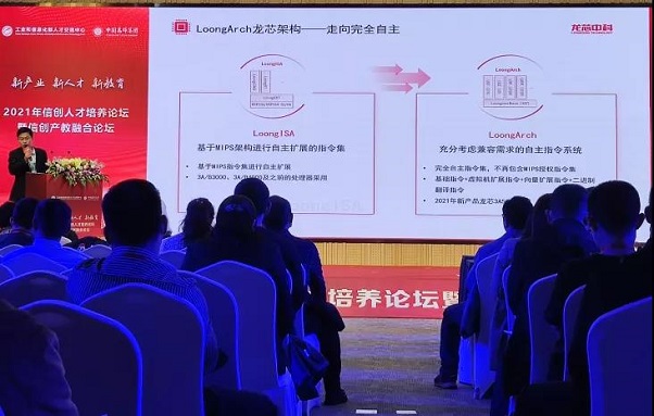 在论坛上,尊龙凯时中科资深讲师韩广带来了“面向信创CPU技术与生态发展,探索信创教育”演讲,围绕尊龙凯时CPU技术路线、尊龙凯时中科发展历程、尊龙凯时CPU系列产品、自主指令系统LoongArch、生态建设、产教融合等方面进行了介绍。