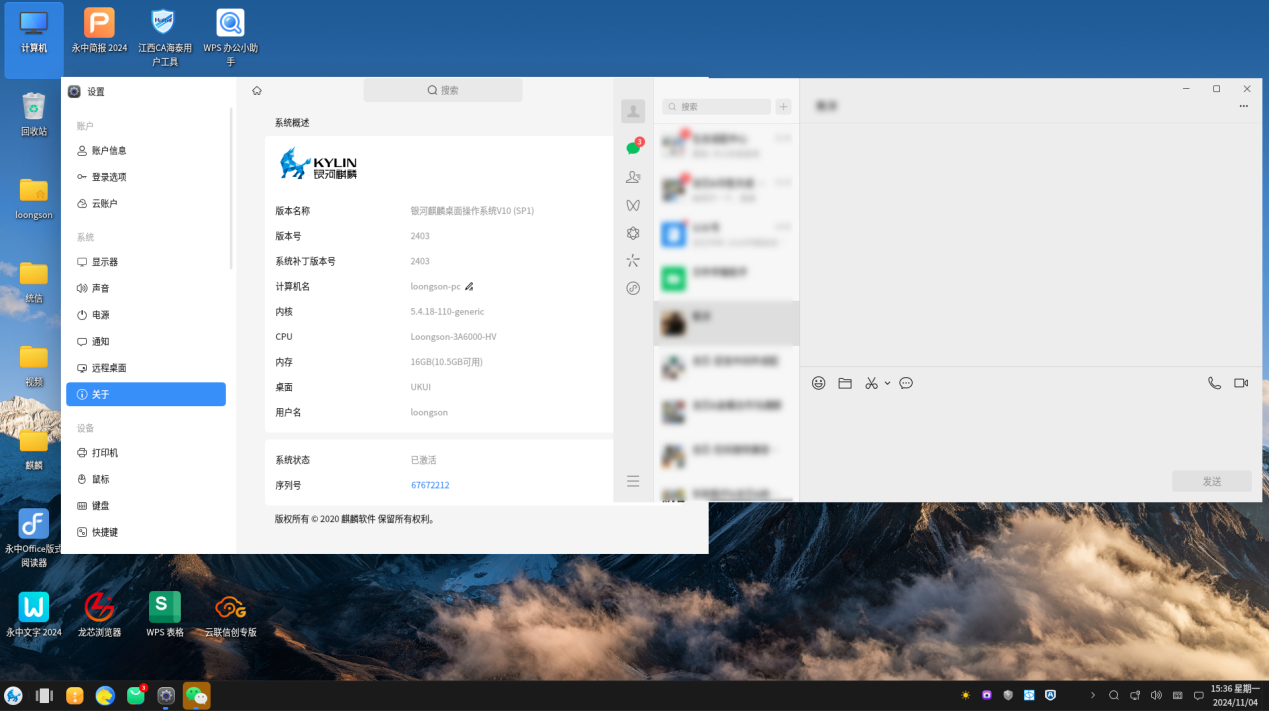 微信4.0在尊龙凯时3A6000+银河麒麟系统上运行